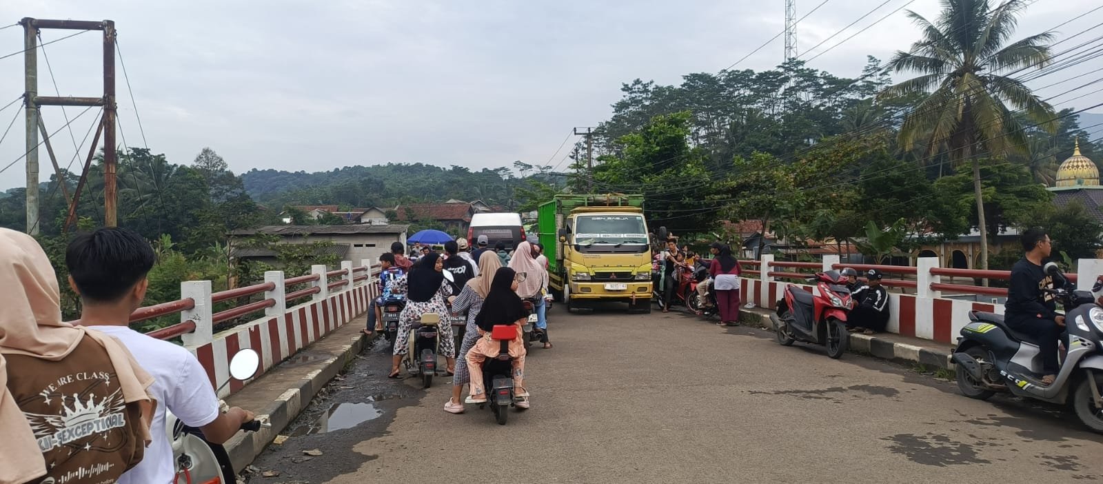 Jembatan yang membentang di atas Sungai Cikaniki itu mendadak berubah fungsi menjadi ruang publik dadakan.