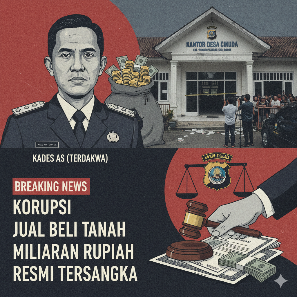 Literasirakyat.com-BOGOR – Kepala Desa (Kades) Cikuda, Kecamatan Parungpanjang, Kabupaten Bogor, berinisial AS, resmi ditetapkan sebagai tersangka dalam kasus dugaan tindak pidana korupsi berupa gratifikasi terkait penertiban dokumen jual beli objek tanah di wilayahnya.