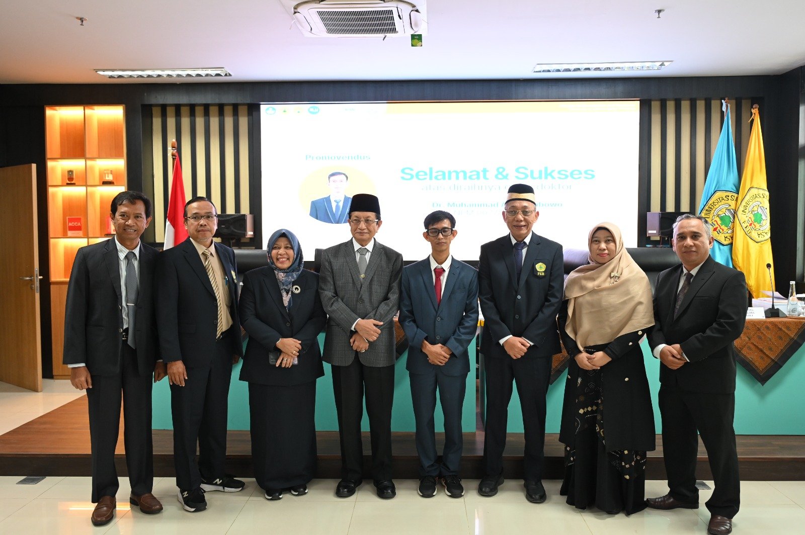 serta jajaran promotor: Prof. Dr. Meutia, SE., MP, Dr. Windu Mulyasari, SE., M.Si., CSRS., CSRA, dan Dr. Agus Sholikhan Yulianto, SE., Ak., M.Si.