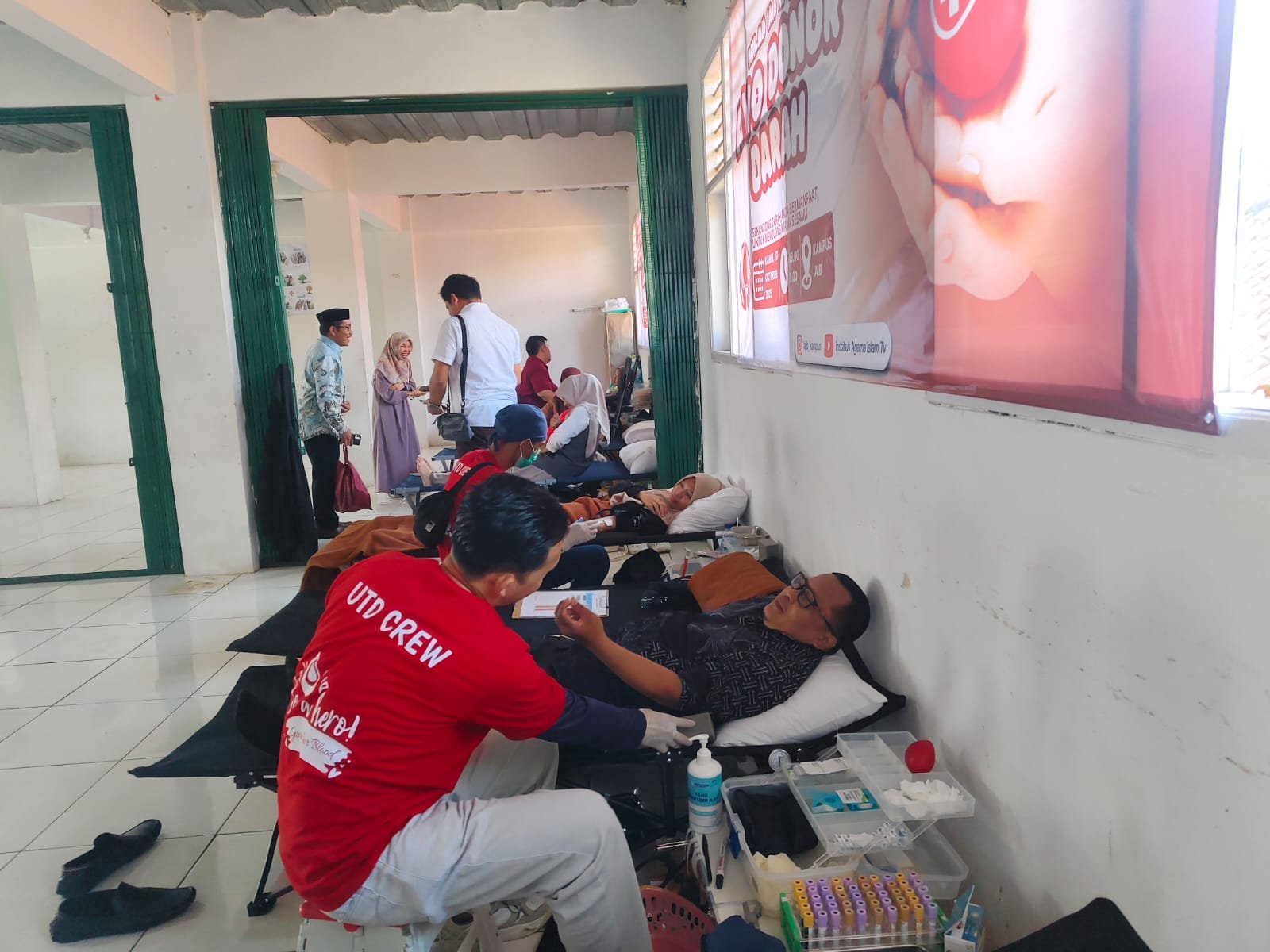 Ratusan civitas akademika dan masyarakat sekitar berbondong-bondong mengikuti kegiatan donor darah yang digelar oleh kampus muda nan progresif itu.